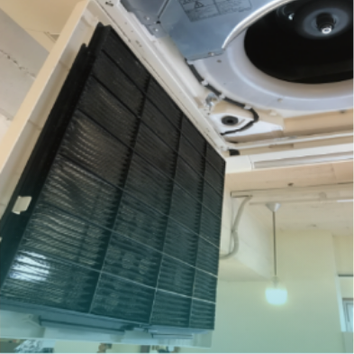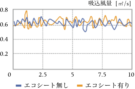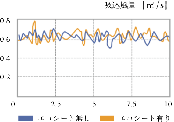 「エコシート」は吸い込む風量を落とすことなく気流に変化を与え、ファン内での空気の滞留を防ぎ、熱交換器へ流入する空気の乱れを少なくし円滑にすることで熱交換の効率を上げるという新しい着想の省エネルギー部材です。