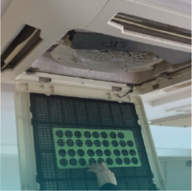 高い遠赤外線放射素材であるエコシートは空気中の水微粒子を共振させ励起する。活性化した水微粒子は微細化し相変化(気化)が促進されることに加え、乱流化によって熱伝達率が大きくなり、熱流束が大きくなったことで空調効率を向上させる。